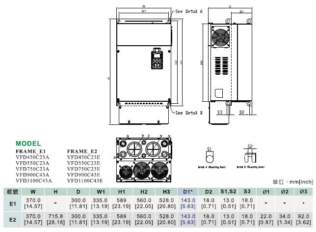 型号:VFD450C23A型高级磁场向量控制变频器(E型尺寸)