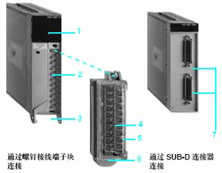 4 一个可拆卸螺钉端子,用于将 I/O 直接连接到传感器和预执行器 TSX BLY 01(需单独定购)。