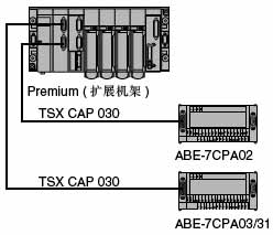 连接是通过一条两端配有 SUB-D 连接器的 TSX CAP 030 型 3 m 屏蔽电缆实现的。