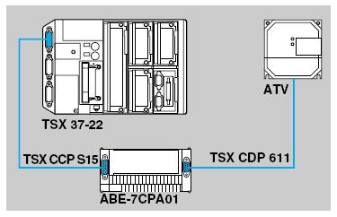 用两端连有SUB-D连接器的TSX CCP S15 ***屏蔽电缆进行连接。
