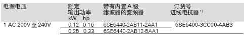 适用于6SE6440-2UC11-2AA1,6SE6440-2UC12-5AA1(MICROMASTER 440系列变频器 单向交流 200V-240V 无滤波器)