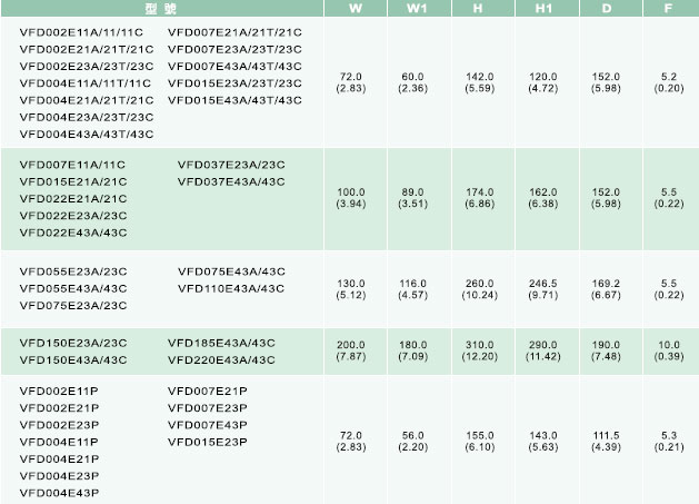 | VFD150E43A高功能/弹性扩充/迷你型通用变频器(460V 三相) |