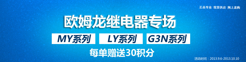2013.9.6—2013.10.10期间,用户在中华自动化下单订购欧姆龙继电器,每单可获赠30积分。