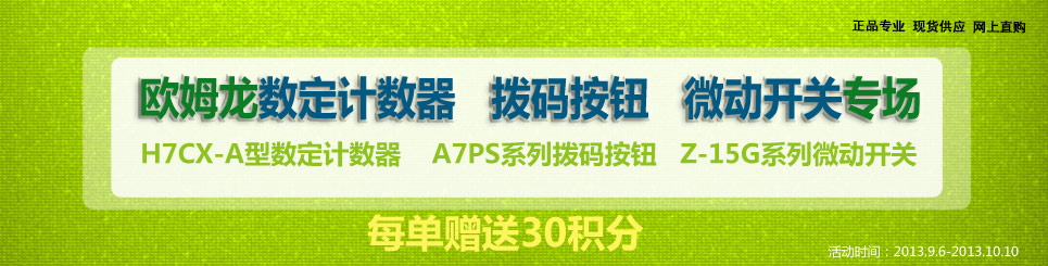 2013.9.6—2013.10.10期间,用户在中华自动化下单订购欧姆龙数定计数器、拨码按钮、微动开关,每单可获赠30积分。